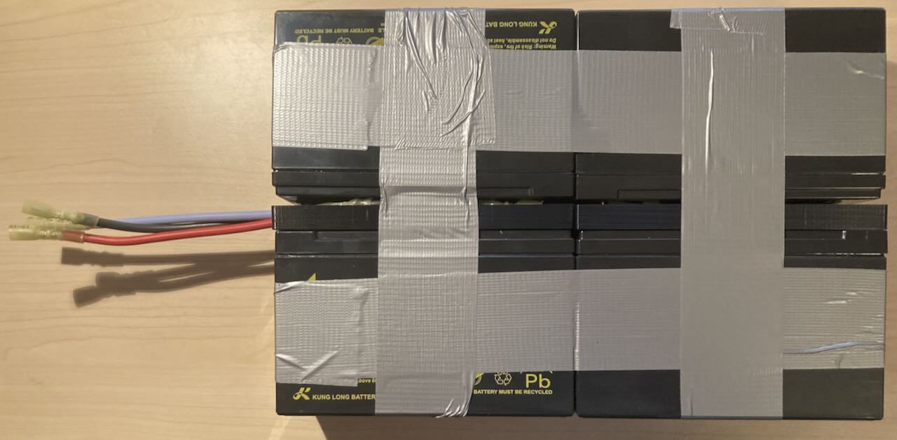 Die Höhe der Batteriehalters reicht bei mir nicht ganz aus - die isolierten Flachsteckhülsen nehmen viel Platz in Anspruch. Auch im Original werden die Batteriepackungen miteinander verklebt - also muss das Gaffertape herhalten. Nachzubessern: